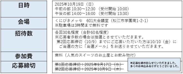 10/19(日)開催 各回30名ご招待♪