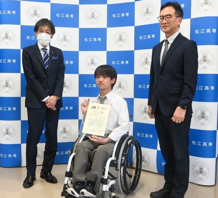 今回、松江工業高等専門学校 電気情報工学科2年生の三上 直太郎さんが応募した作品が、中国・四国地区ブロック賞を受賞しました。